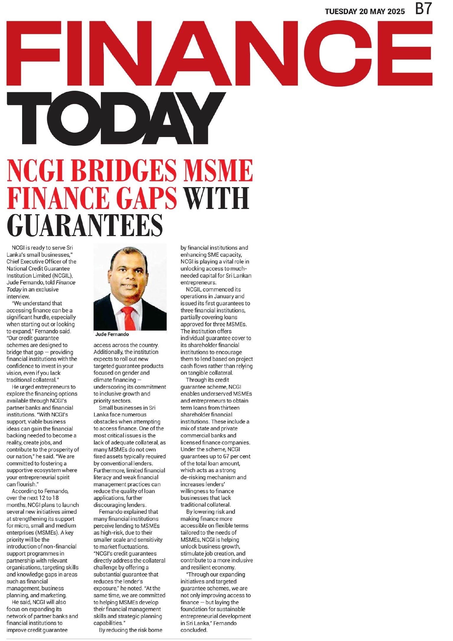 The National Credit Guarantee Institution Limited (NCGIL) conducted an awareness session for the corporate/senior management team of Peoples Bank. The session was focused on enhancing their understanding of NCGIL's guarantee scheme/administration processes, procedures and the role of the bank in driving the scheme for the benefit of the MSME sector in Sri Lanka. The CEO of the bank made the initial comments and requested the staff to absorb the concept and support the scheme.